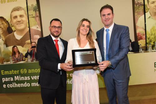 Na cerimônia deste quarta-feira, a Emater-MG homenageou funcionários que completaram 10, 20, 25, 35 e 40 anos, além de várias autoridades, produtores e representantes de instituições parceiras. Uma das homenageadas foi a presidente do Serviço Voluntário de Assistência Social (Servas), Carolina de Oliveira Pimentel, por parcerias nos projetos Água Vida e + Gastronomia.