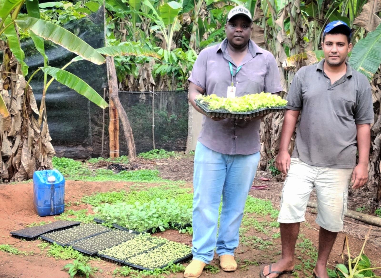 O extensionista Juliano Pires e o produtor Edivaldo do Nascimento